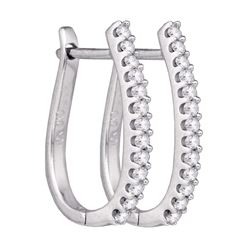 0.24 CTW Pave-set Diamond Oblong Hoop Earrings 10KT White Gold - REF-26K9W