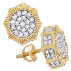 0.75 CTW Mens Diamond Starburst 3D Cluster Stud Earrings 10KT Yellow Gold - REF-57K2W