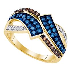 0.50 CTW Mens Diamond Double Row Two-tone Ridged Ring 10KT Yellow Gold - REF-57F2N