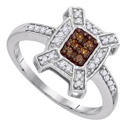 0.20 CTW Cognac-brown Color Diamond Square Ring 10KT White Gold - REF-18X2Y