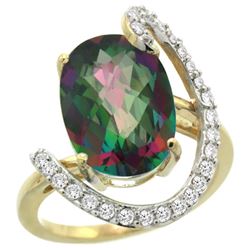 Natural 5.89 ctw Mystic-topaz & Diamond Engagement Ring 14K Yellow Gold - REF-91V4F