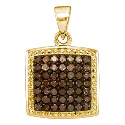0.50 CTW Cognac-brown Color Diamond Square Pendant 10KT Yellow Gold - REF-20M9H