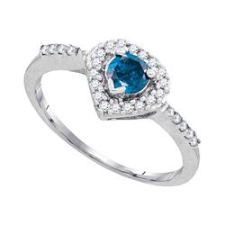 0.33 CTW Blue Color Diamond Heart Love Anniversary Ring 10KT White Gold - REF-18M2H
