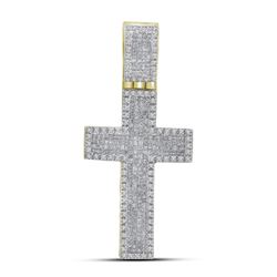 1.65 CTW Mens Princess Diamond Inset Cross Charm Pendant 10KT Yellow Gold - REF-82M4H