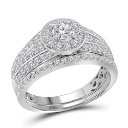 1.05 CTW Diamond Cluster Halo Bridal Engagement Ring 14KT White Gold - REF-87Y2X