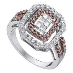 0.75 CTW Cognac-brown Color Diamond Rectangle Cluster Ring 14KT White Gold - REF-89M9H