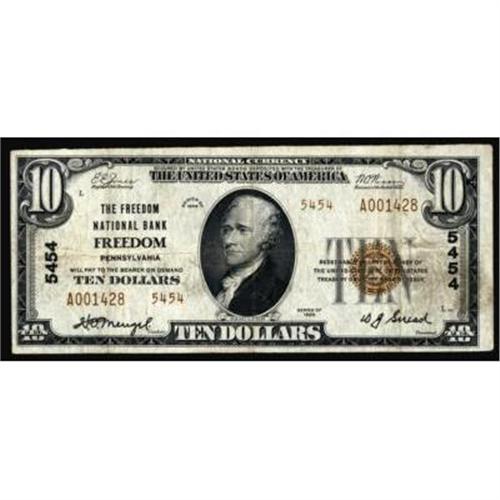Freedom, PA. $10 1929 Ty. 2. The Freedom NB. Charter #5454. Fine.