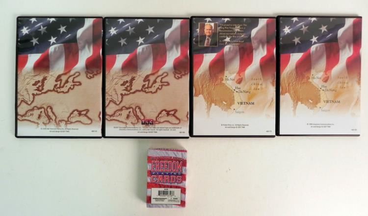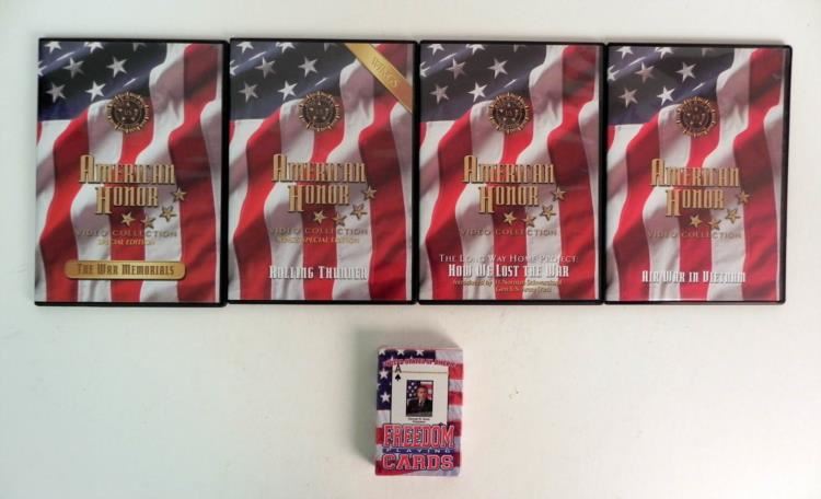 This is a combined lot of an unopened set of Freedom Playing Cards and a 4 Part DVD set of a Vietnam Documentary, "American Honor".