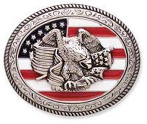 Antique silver plate eagle over enameled american flag, Fits up to size 1-1/2" belts
