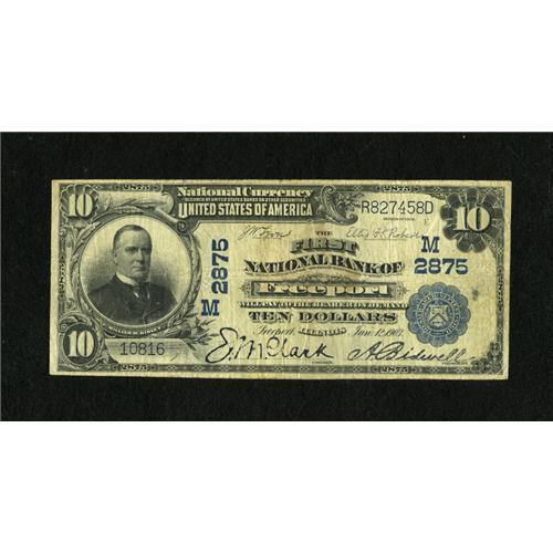 <B>Freeport, IL</B></I> - $10 1902 Plain Back Fr. 624 <B>The First NB</B></I> Ch. # 2875<BR>RJ.M. Clark and A. Bidwell signed this issue. <B>Very Good-Fine.</B></I><BR><I>From The Lincoln Collection</B></I><BR><BR><b>Shipping:</b> Coins & Currency (<a target="_blank" href="http://www.heritageauctions.com/common/shipping.php">view shipping information</a>)