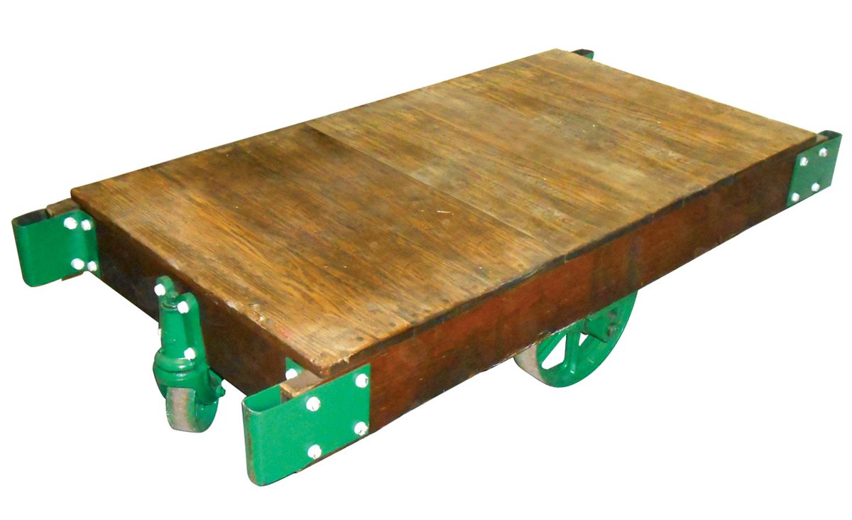 Freight cart, oak w/iron wheels & hardware, VG cond, 58"L x 30"W.