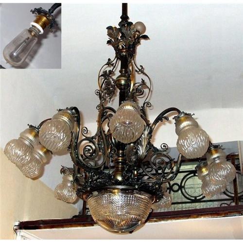 I pasted a picture of the bulbs at the left corner of the photo 1 , and if you check the pictures carefully will see the long incandescent filament typical from the antique Lamps ? just think ? Thomas Edison ( 1847 -1931 ) was still alive and plenty of life when THIS Chandelier with these SAME bulbs you can see at the picture lighting right now , were sold.