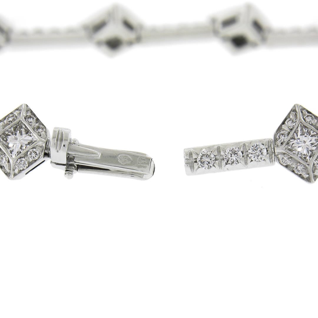 French 18k Gold 3 ctw Princess & Round Diamond Geometric Line Statement Bracelet