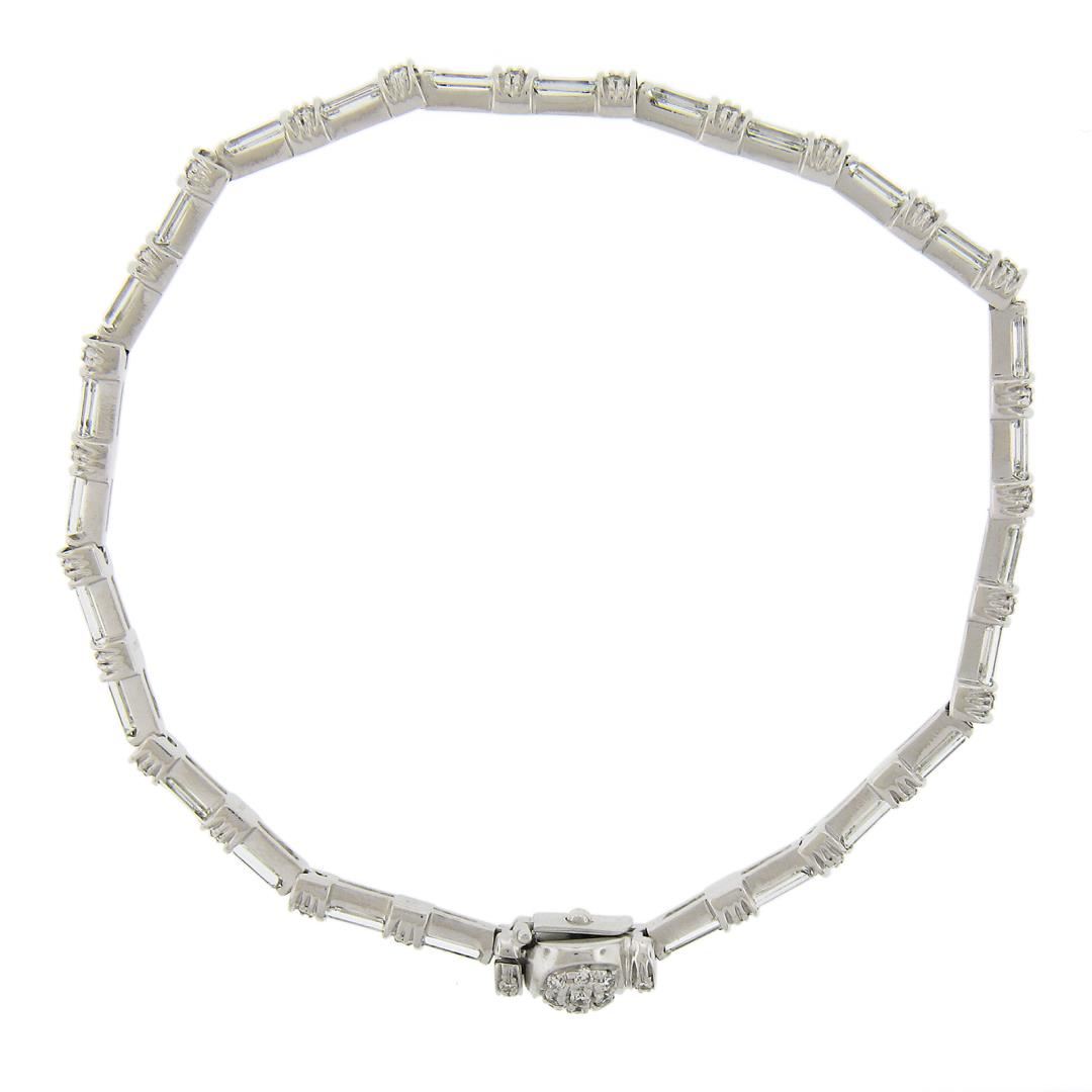 A solid 18k white gold line braceler, featuring 26 straight baguette cut natural diamonds (F/G - VVS2-VS2 ; 3.69ctw), and 75 round cut natural diamonds (G/H  - VS1-SI1 ; 0.40ctw). It weighs a total of 12.42 grams, measures 7.1mm wide, and measures 7.0 inches in length.