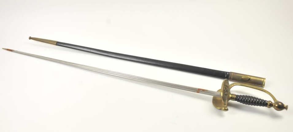 French 19th century Artillery Officer’s sword in good condition with scabbard. H.A. maker’s marks on the blade. The grip is excellent with very good plus scabbard and blade. There are some rust spots on theblade that should clean well. Est.: $200-$400.