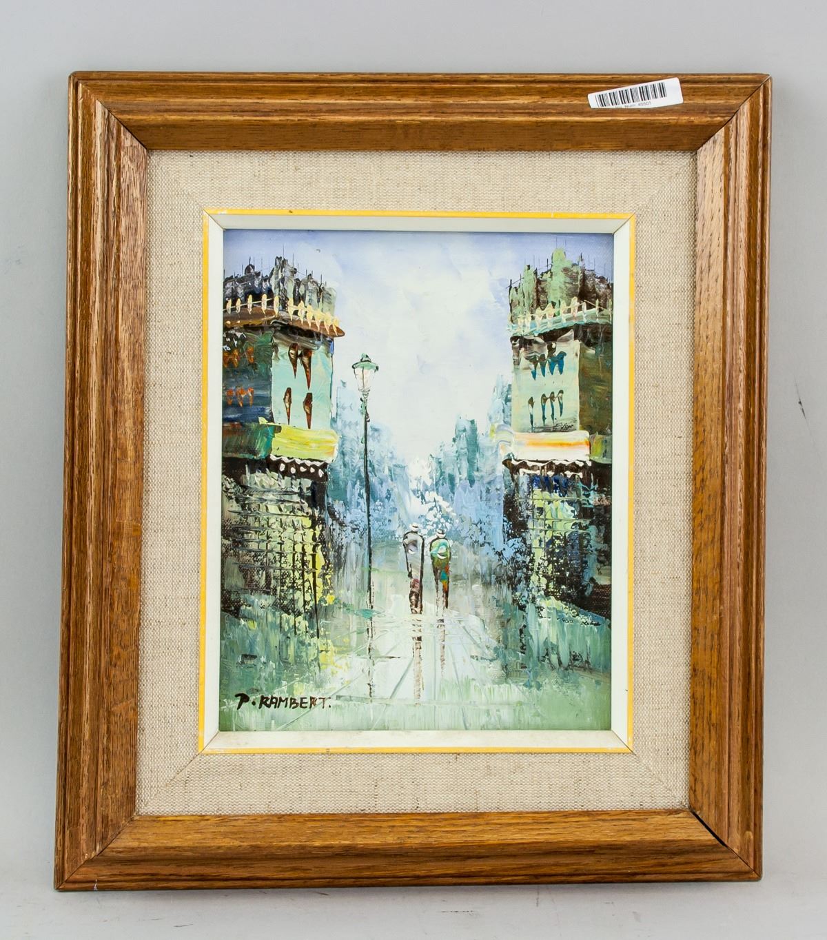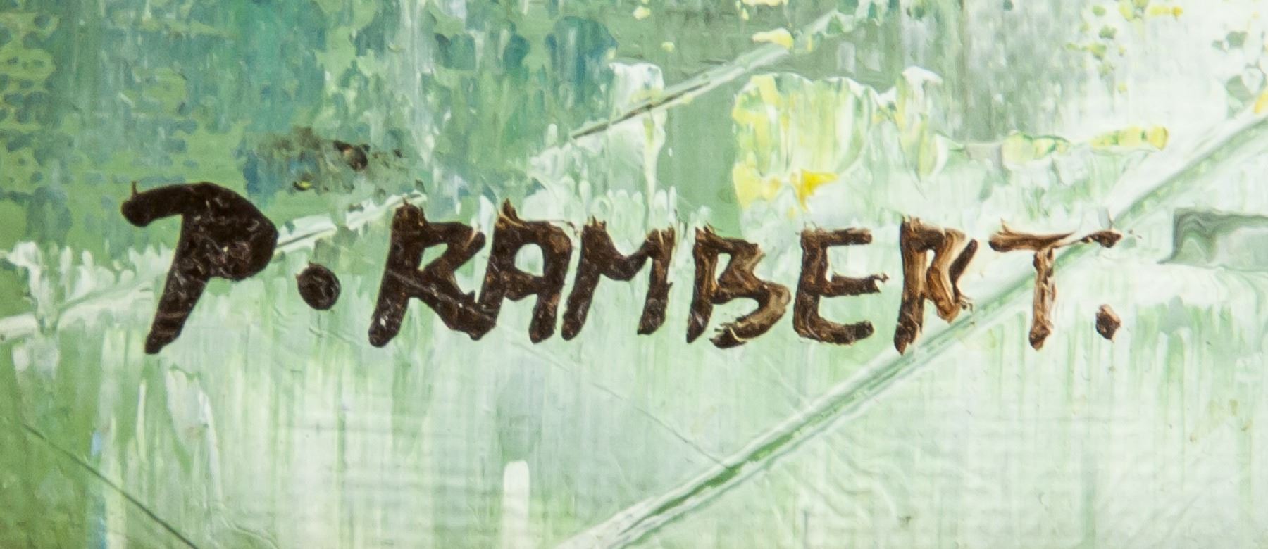 Oil on canvas, framed. Featuring landscape impressionist scene of Paris, France. Signed by Paul Rambert (20th century French) in the lower left corner. 24 x 18.5 cm (9.4 x 7.3 inches)