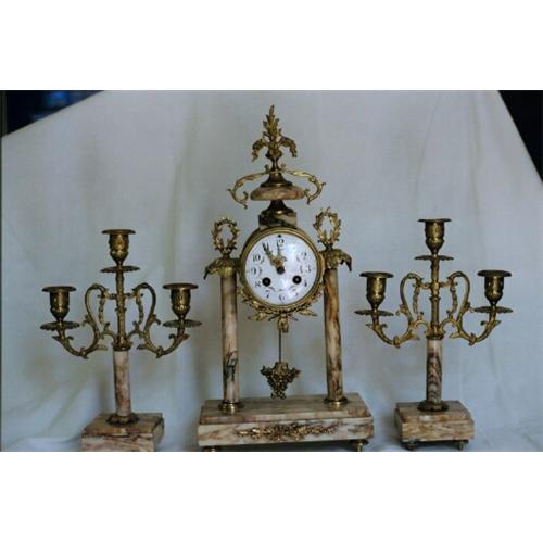 <tr><td>Title:French 3 pc Clock & Candelabra Set</td></tr>