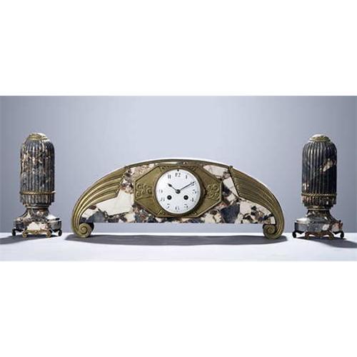 <tr><td>Title:French Art Deco Marble Clock & Obelisque Set</td></tr>