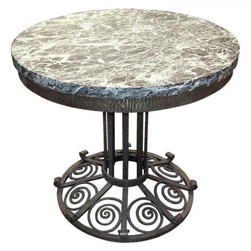 <tr><td>Title:French Art Deco Marble Wrought Iron Table</td></tr>