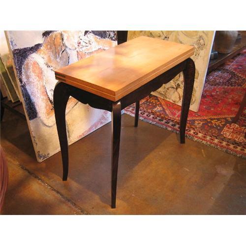<table width="100%" border="0" cellspacing="0" cellpadding="4"><tr><td><em> </em></td></tr><tr> <td width="100%"> French Art Deco period game table with slight cabriole legs. Base and legs are a dark rosewood, while the top is a light sycamore. The top swivels and opens into a felt-covered game surface. From Lyon, c. 1940. </td></tr><tr> <td> </td></tr><tr> <td>Reference #: Z403</td></tr><tr><td>Condition:great</td></tr><tr><td>Year:1930</td></tr><tr><td>Country:France</td></tr><tr><td>Height:29.5</td></tr><tr><td>Depth:18.25</td></tr><tr><td>Width:33</td></tr><tr><td>Title:French Art Deco Period Game Table</td></tr><tr><td>Style:Art Deco</td></tr><tr><td>Materials:rosewood and sycamore</td></tr><tr><td>Location:Austin, TX</td></tr></table>