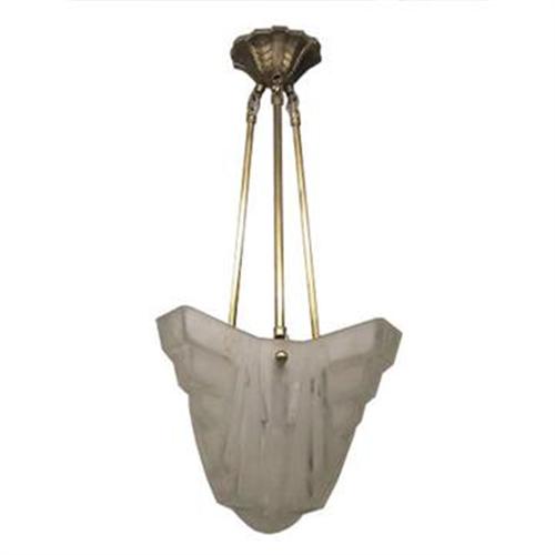 <tr><td>Title:French Art Deco Triangular Coupe Chandelier</td></tr>