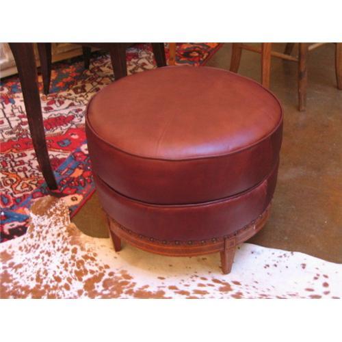 1920s French solid walnut ottoman with a rose wood inlay. Restored with high-density foam and new Argentinean leather. Louis XVI style base.
