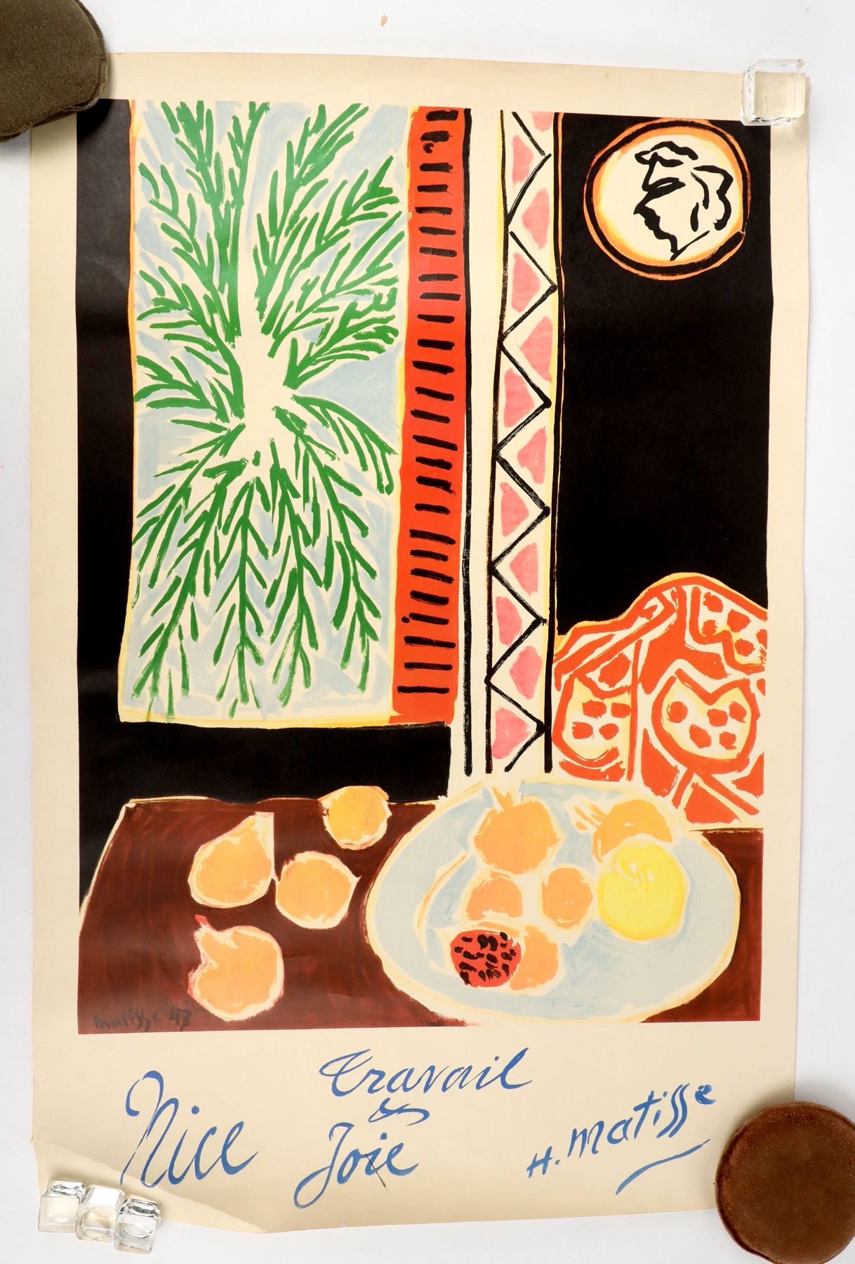 1. Matisse: Cravail, Nive, Joie, 20 x 28, no publisher shown, approximate date1964, folds along bottom edge with small tear not into actual art.