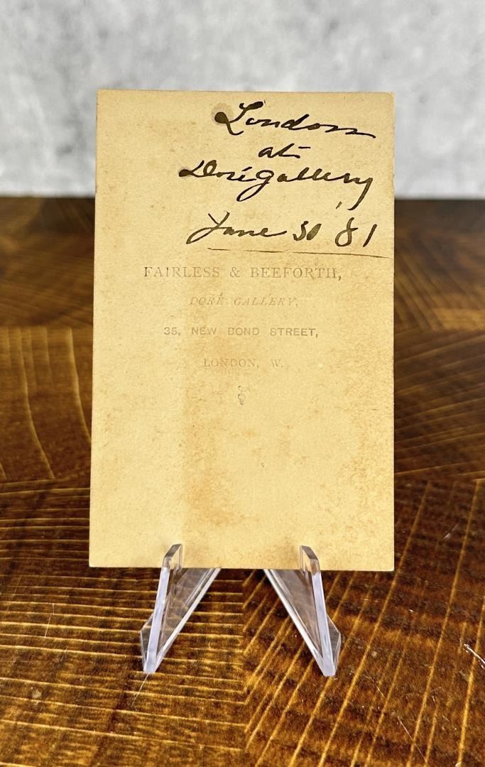 4" by 2 1/2". Wikipedia says of Dore- Paul Gustave Louis Christophe Doré (6 January 1832 – 23 January 1883) was a French printmaker, illustrator, painter, comics artist, caricaturist, and sculptor. He is best known for his prolific output of wood-engravings illustrating classic literature, especially those for the Vulgate Bible and Dante's Divine Comedy.