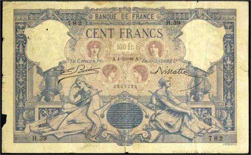 Francia - Biglietto di Banca da 100 Franchi serie H.39 782 datato 4.10.1988