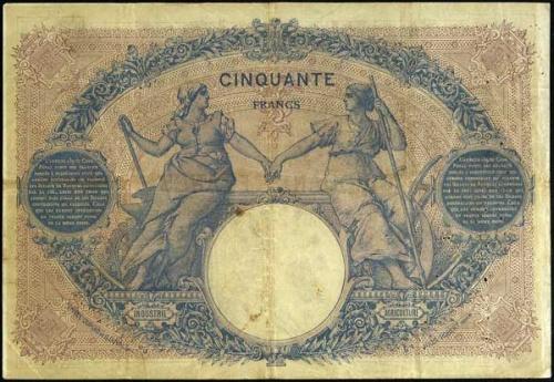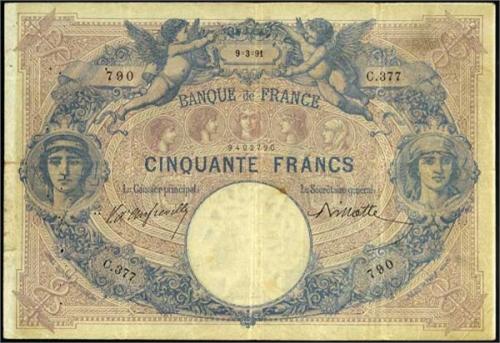 Francia - Biglietto di Banca da 50 Franchi serie C.377 790 datato 9.3.1891