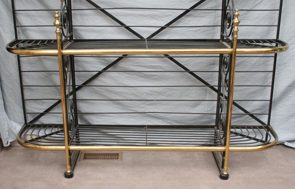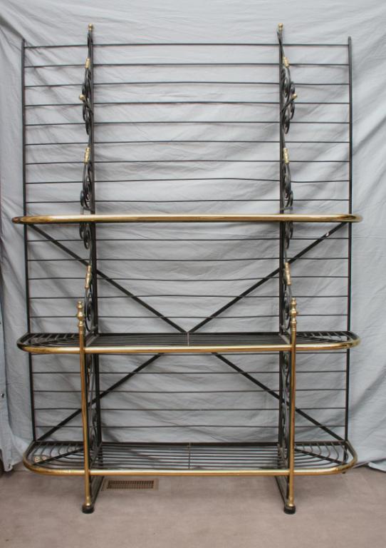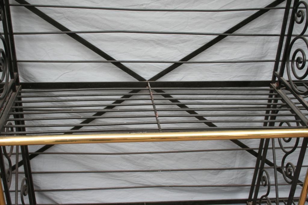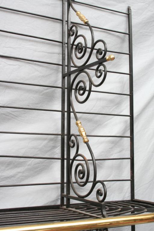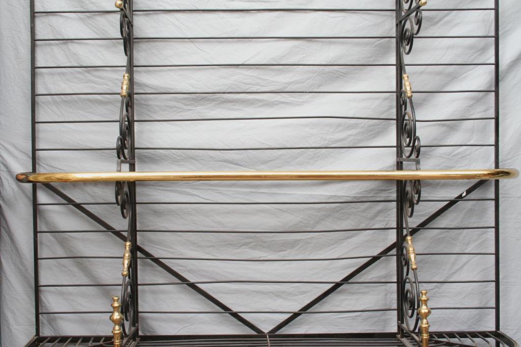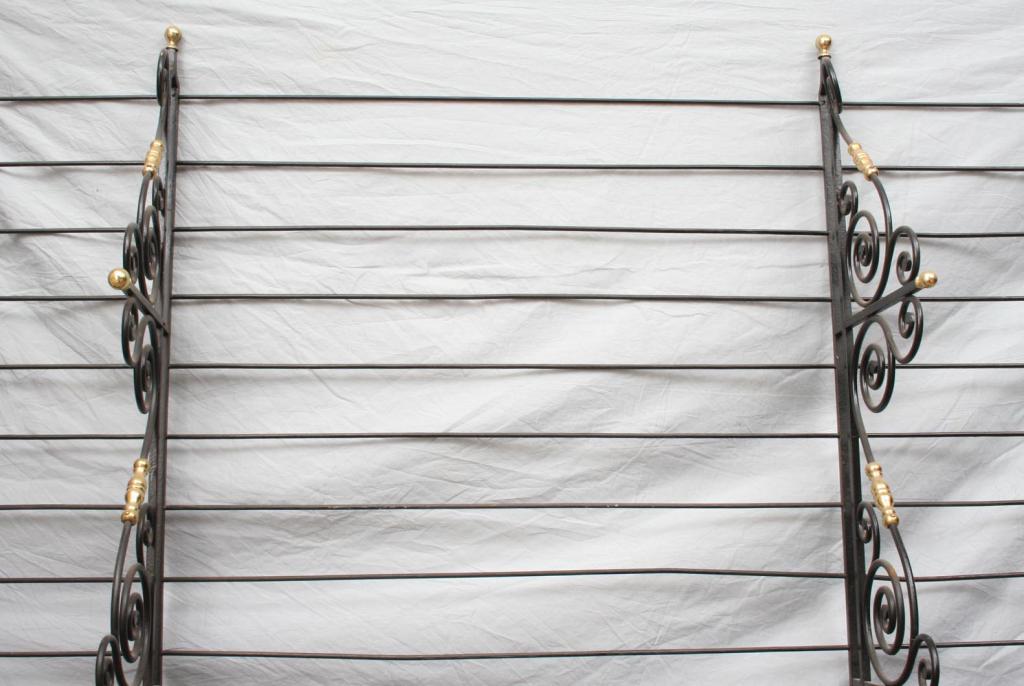 Second half 20th century, the iron form cast with scrolled supports, accented with brass finials. 7'6" x 6'2". Condition: some light expected wear, including light pitting and scratches, generally good.