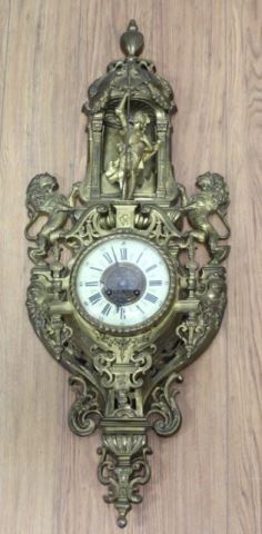 With lions on each side and soldier standing in center. Approx. 33" H x 13" W. (6130) Some lines on face.