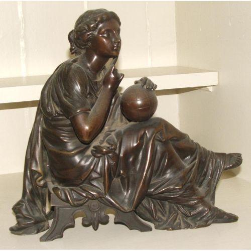 unsigned. Mold #20460. French. Late 19th century. Bronze. Nice cast statue in the manner of Albert Ernest Carrier Bellease (French 1824-1897) depicting a classical woman in a long, gown, sitting on a bench with a ball in her hand. 10" high