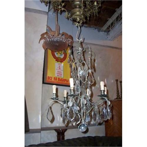 This is a French Bronze and Crystal Chandelier c.1940. It needs to be rewired. Its measurements are 31X21