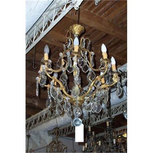 This is a French Bronze and Crystal Chandelier c.1940. It needs to be rewired. Its measurements are 30.5X24