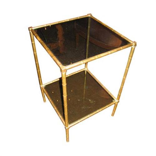 French gilded bronze faux bamboo two-tiered side table with tinted glass, from Nice.</em></td>