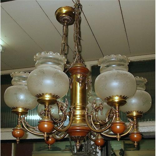 <tr><td>Title:French Bronze chandelier frosted shades </td></tr>