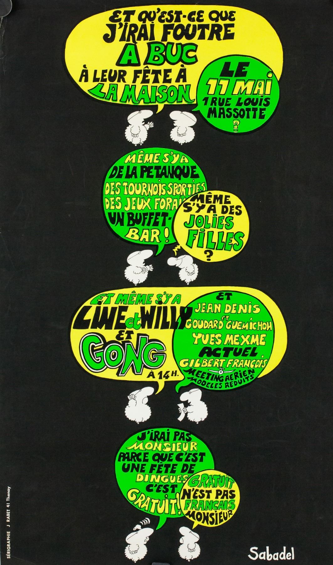 Serigraph on paper. French cartoonist. Inscribed Serigrpahie J Rabet 41 Thenay alongside lower left corner. 60 x 36 cm (23.75 x 14 in). PROVENANCE: This lot carries limited provenance from a Private Ontario collection