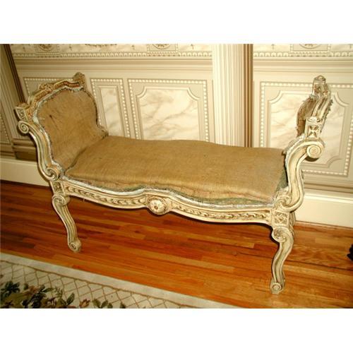 <tr><td>Title:French Carved Bench Large 18th C. Rolled Arms</td></tr>