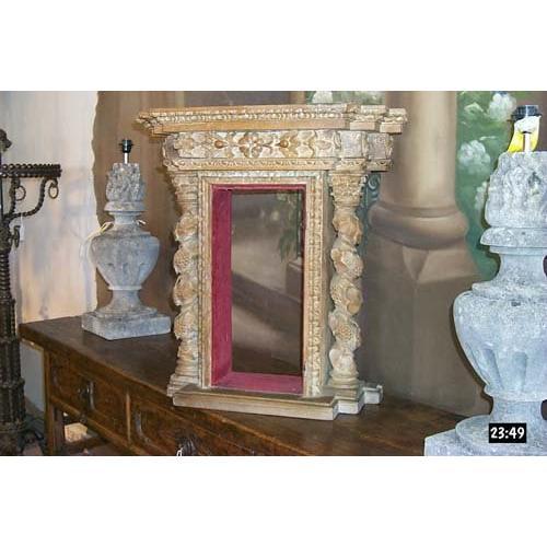 This is a very unique church altar piece, found in France. It is very old, yet in good condition. We believe it to be from the late 1700's. The carving is very detailed and quite impressive. The wood is bleached oak.