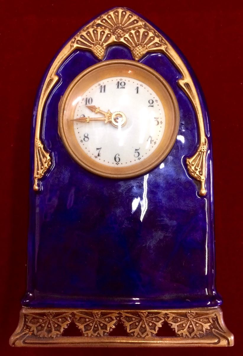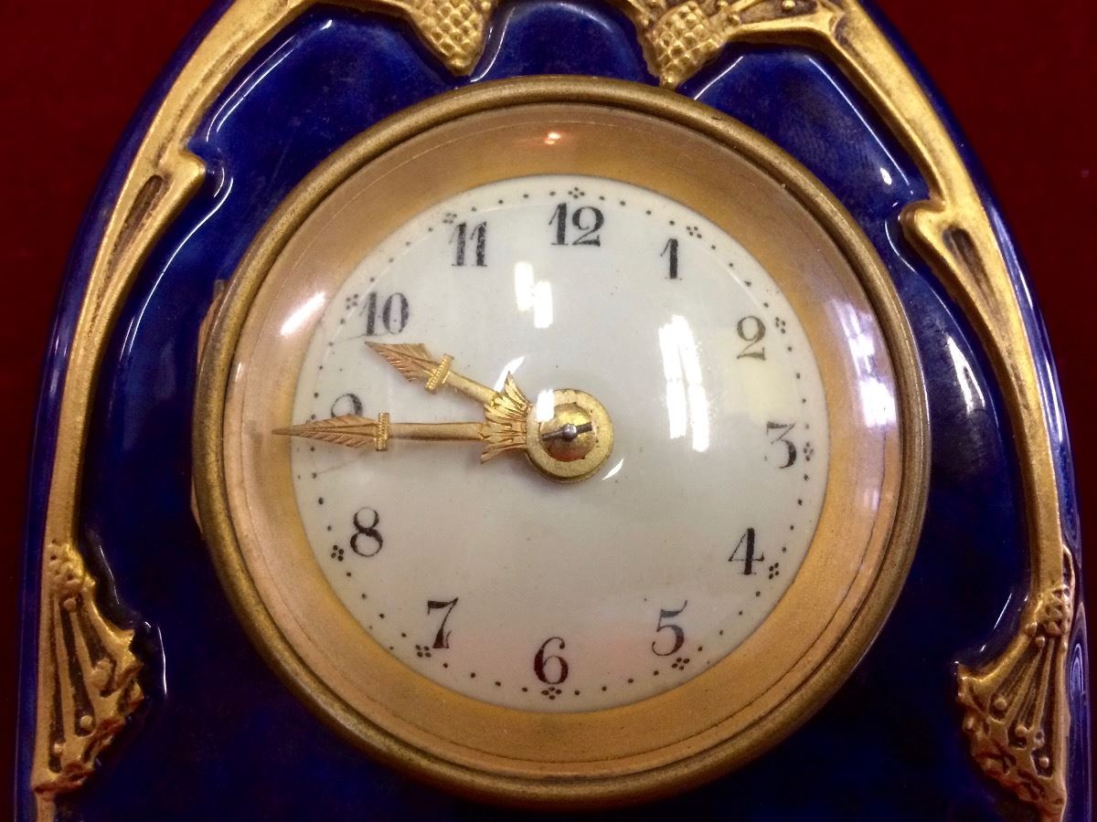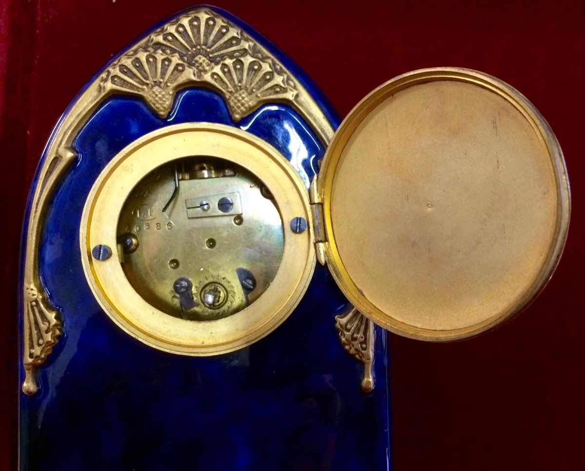French Cobalt blue porcelain Mantel clock/DESK /BOUDOIR CLOCK WORKING c.1890, Missing Key