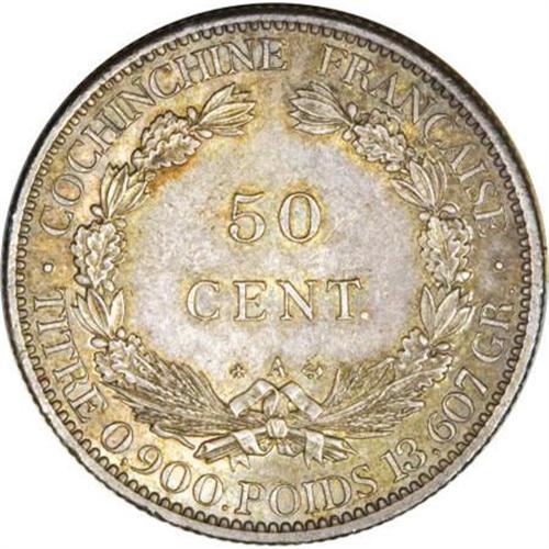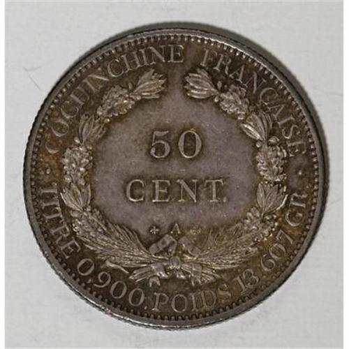 <B>French Colonial 50 Centimes 1879A,</B></I> KM6, toned AU-UNC, a nice original coin with that old-time cabinet feel.<BR><I>From the Robert Sayre Collection.</B></I><BR><BR><b>Shipping:</b> Coins & Currency (<a target="_blank" href="http://www.heritageauctions.com/common/shipping.php">view shipping information</a>)