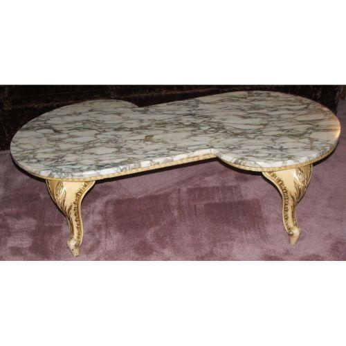 French taste. 20th century. Painted wood with a marble top. 15 1/4 high by 54" long.