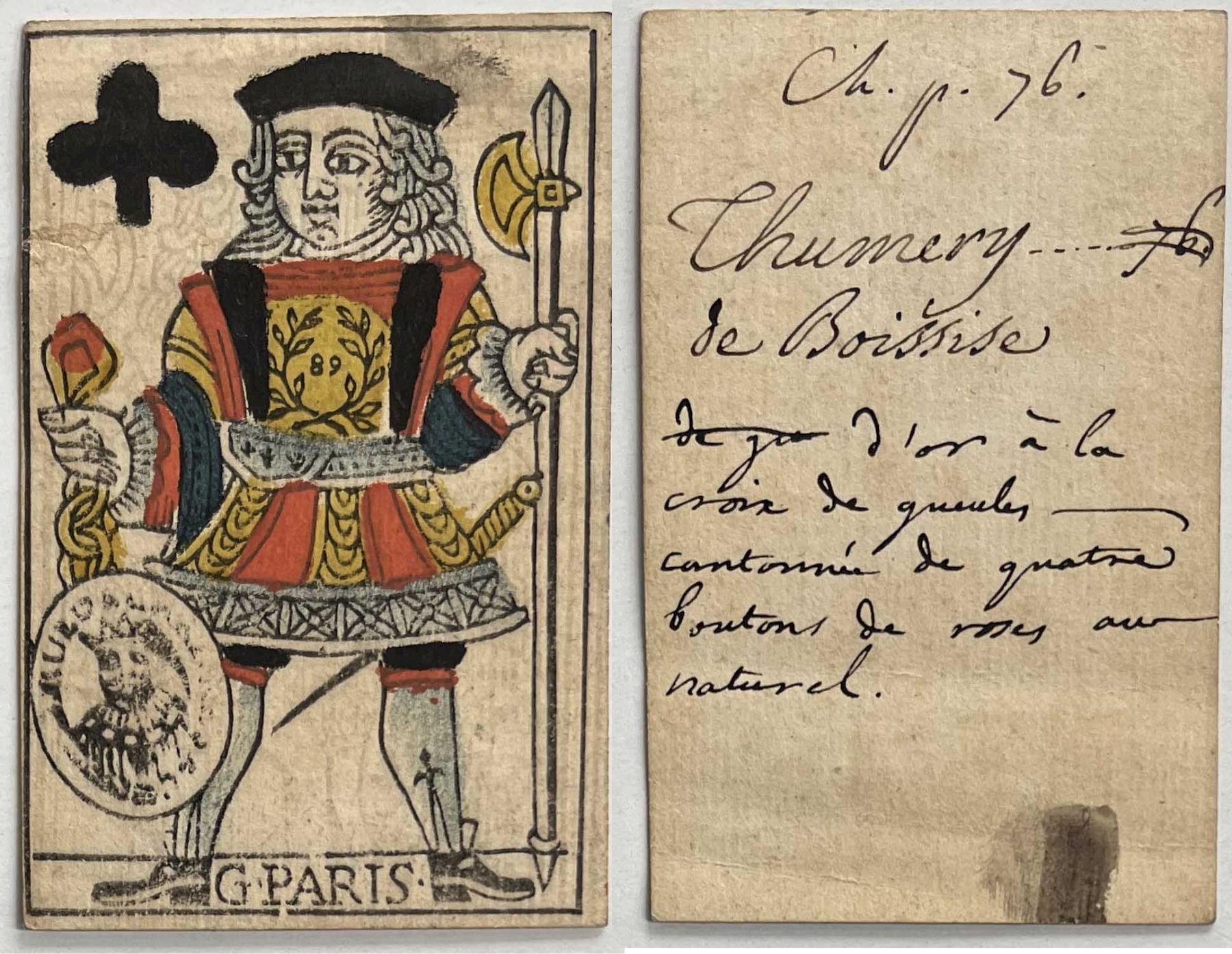 French Colonial Issue Playing Card; "Jacks of Clubs" with French Hand Written on the back.