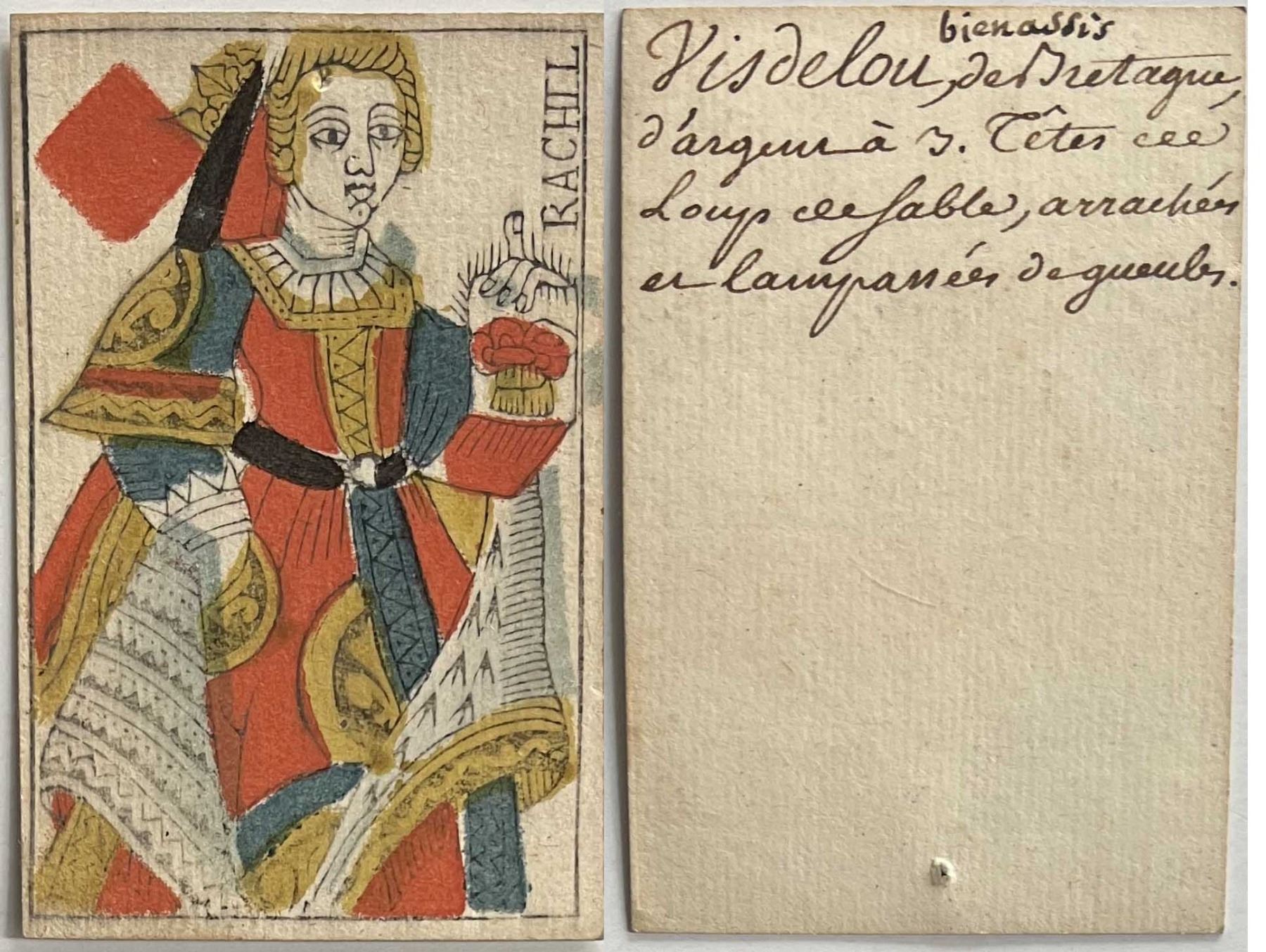 French Colonial Issue Playing Card; "Queen of Diamonds" with French Hand Written on the back.