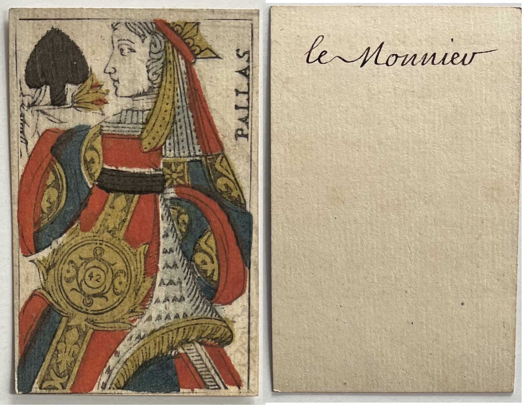 French Colonial Issue Playing Card; "Queen of Spades" with French Hand Written on the back.