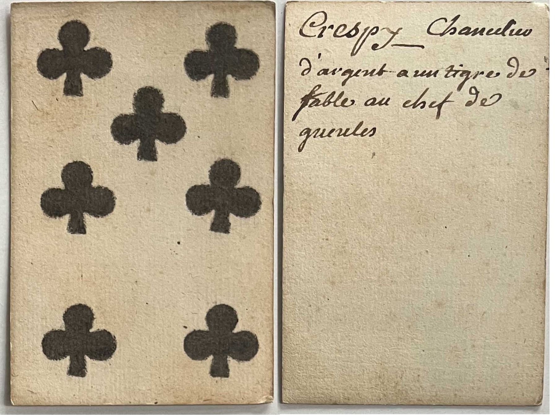 French Colonial Issue Playing Card; "Seven of Clubs" with French Hand Written on the back.