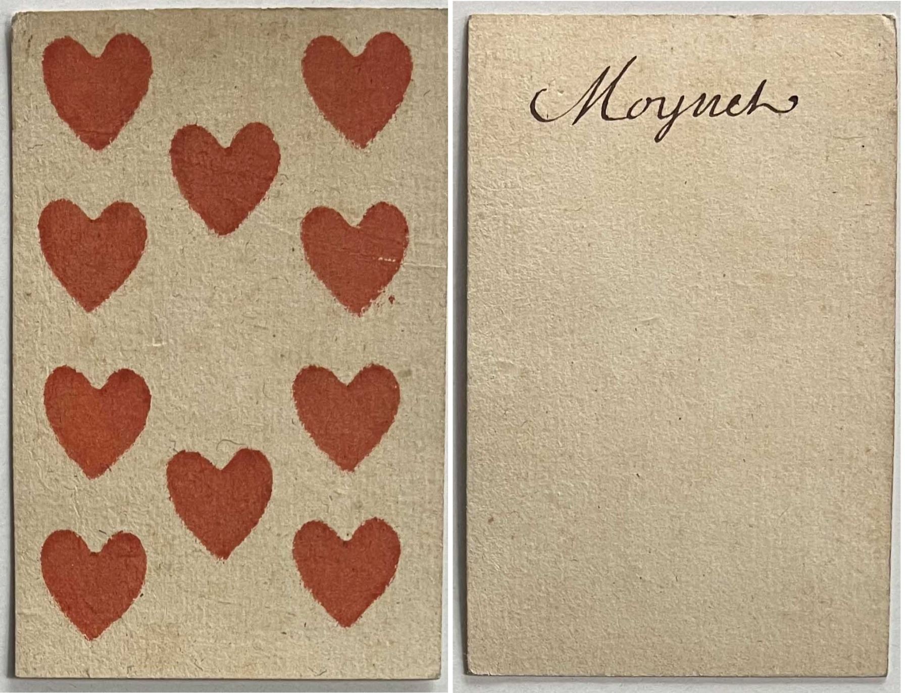 French Colonial Issue Playing Card; "Ten of Harts" with French Hand Written on the back.