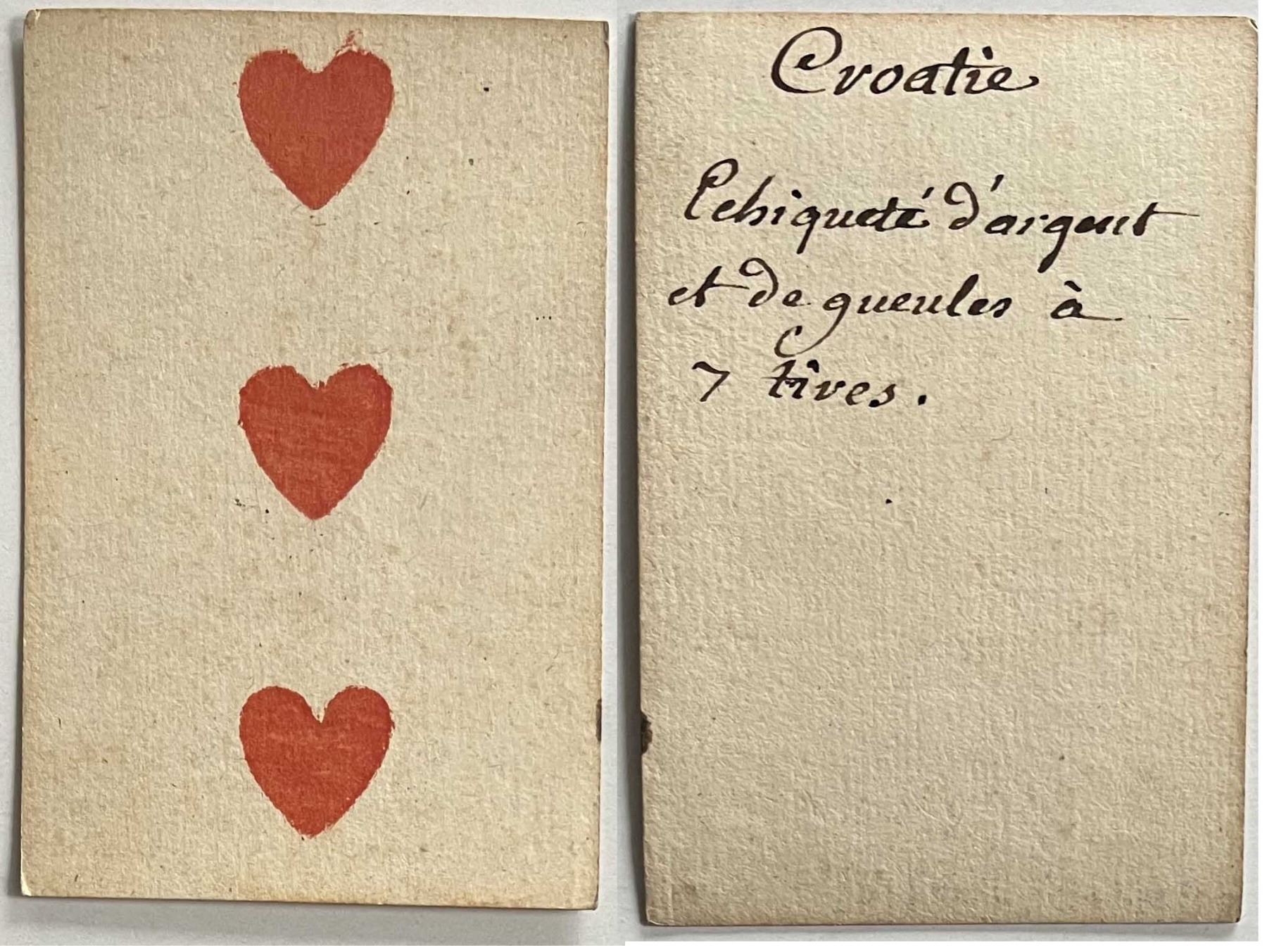 French Colonial Issue Playing Card; "Three of Harts" with French Hand Written on the back.