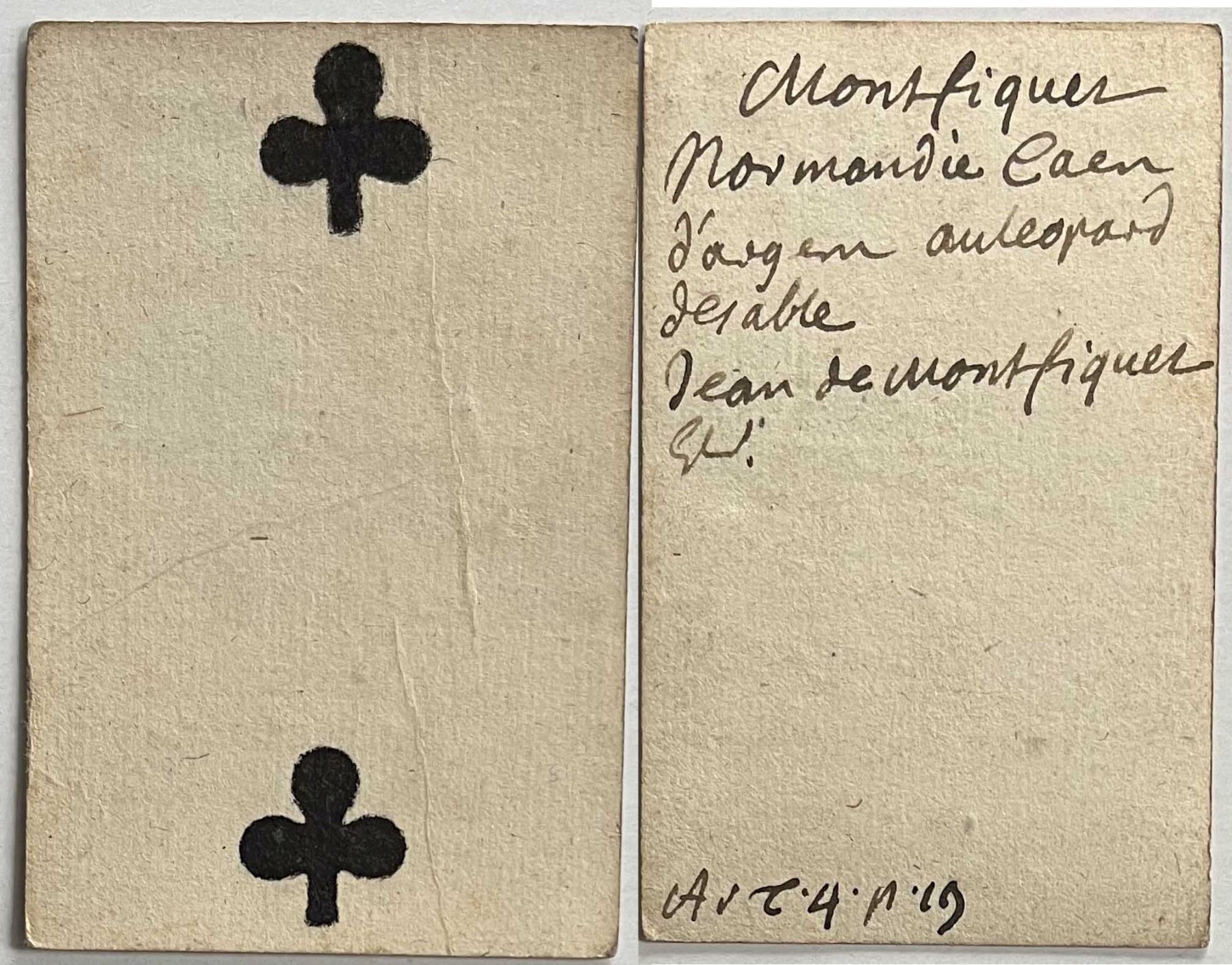 French Colonial Issue Playing Card; "Two of Clubs" with French Hand Written on the back.